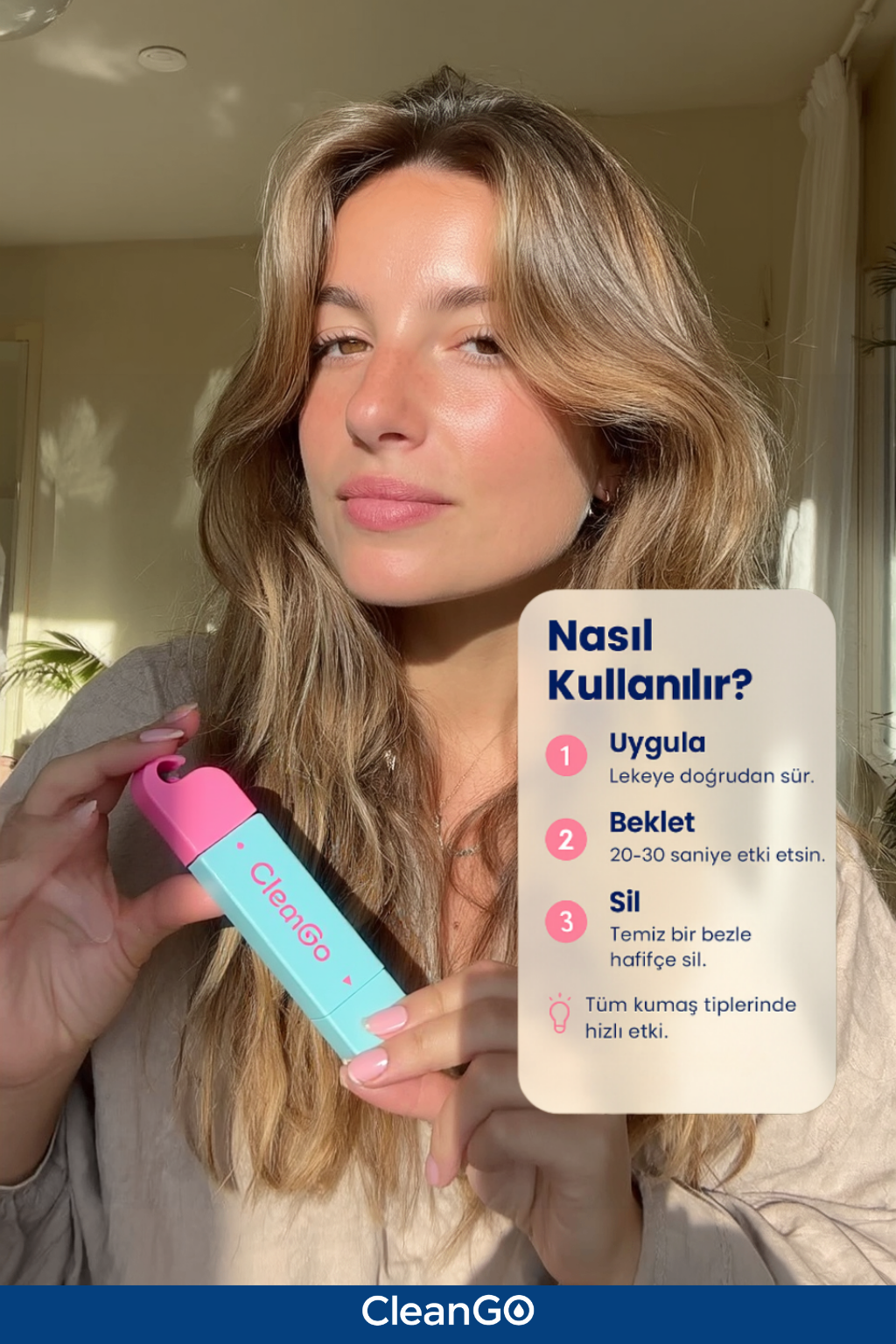Lekeli bölgeye sürün. Kalemin arka kısmındaki fırça ile hafifçe ovun. Temiz bir bezle silerek işlemi tamamlayın. Kurumasını beklemeden anında etki gösterir.